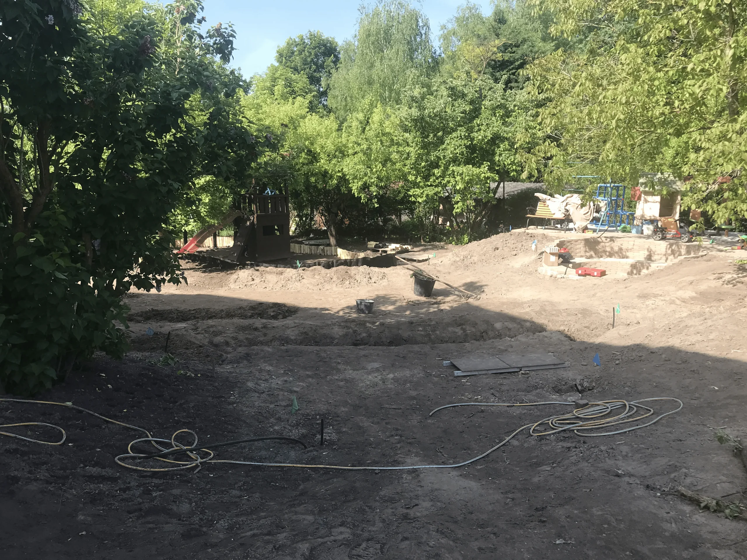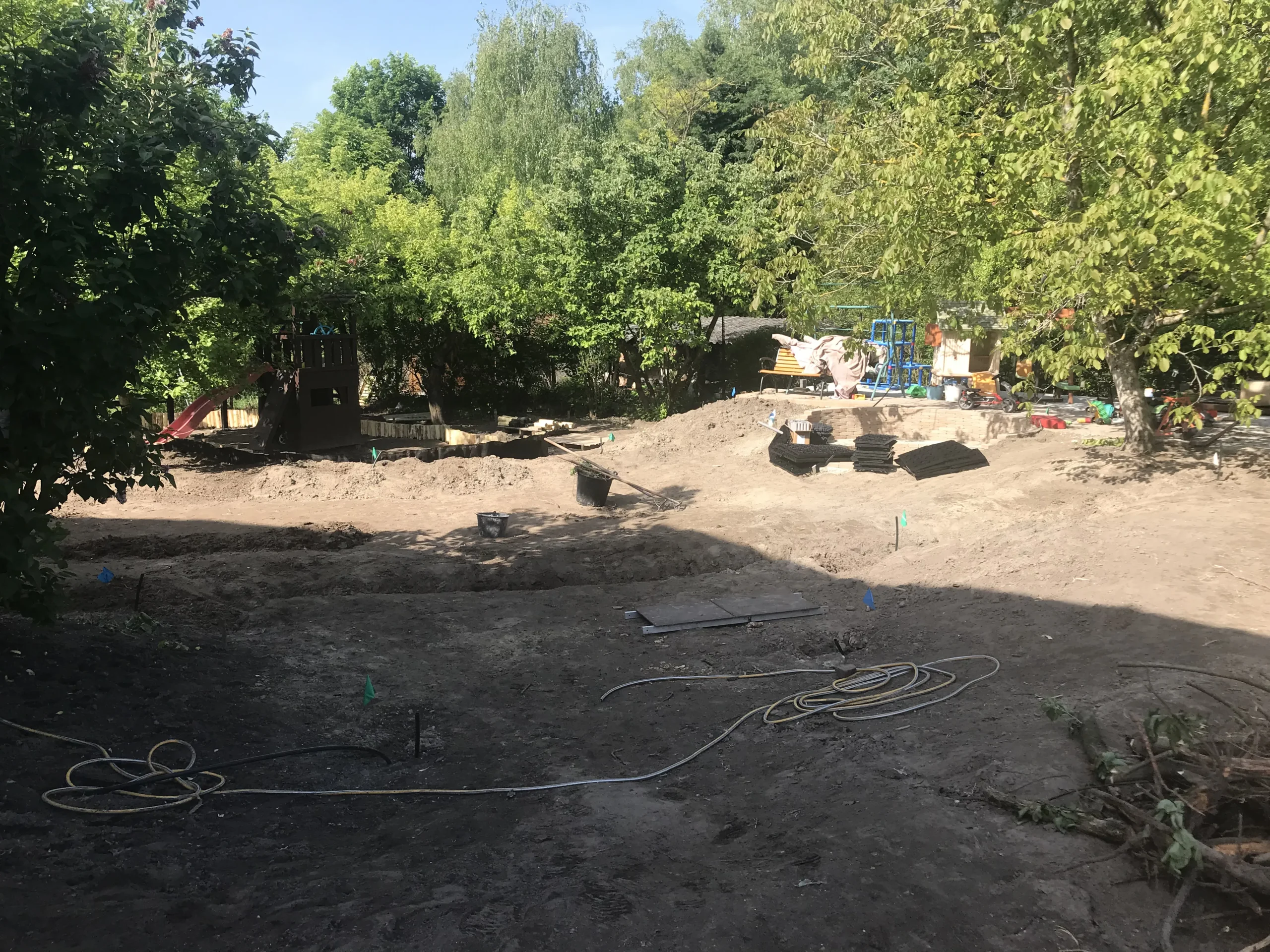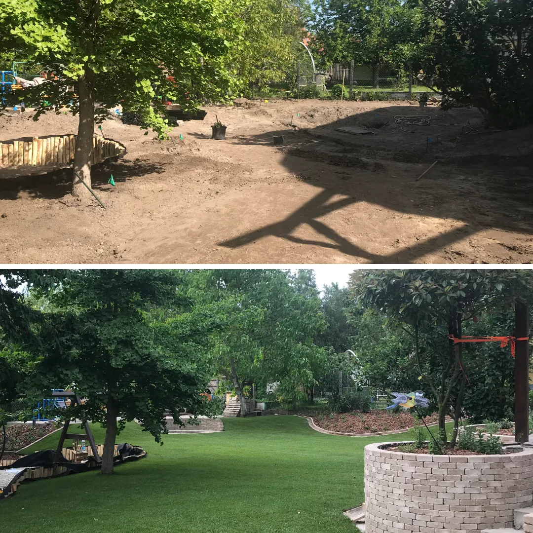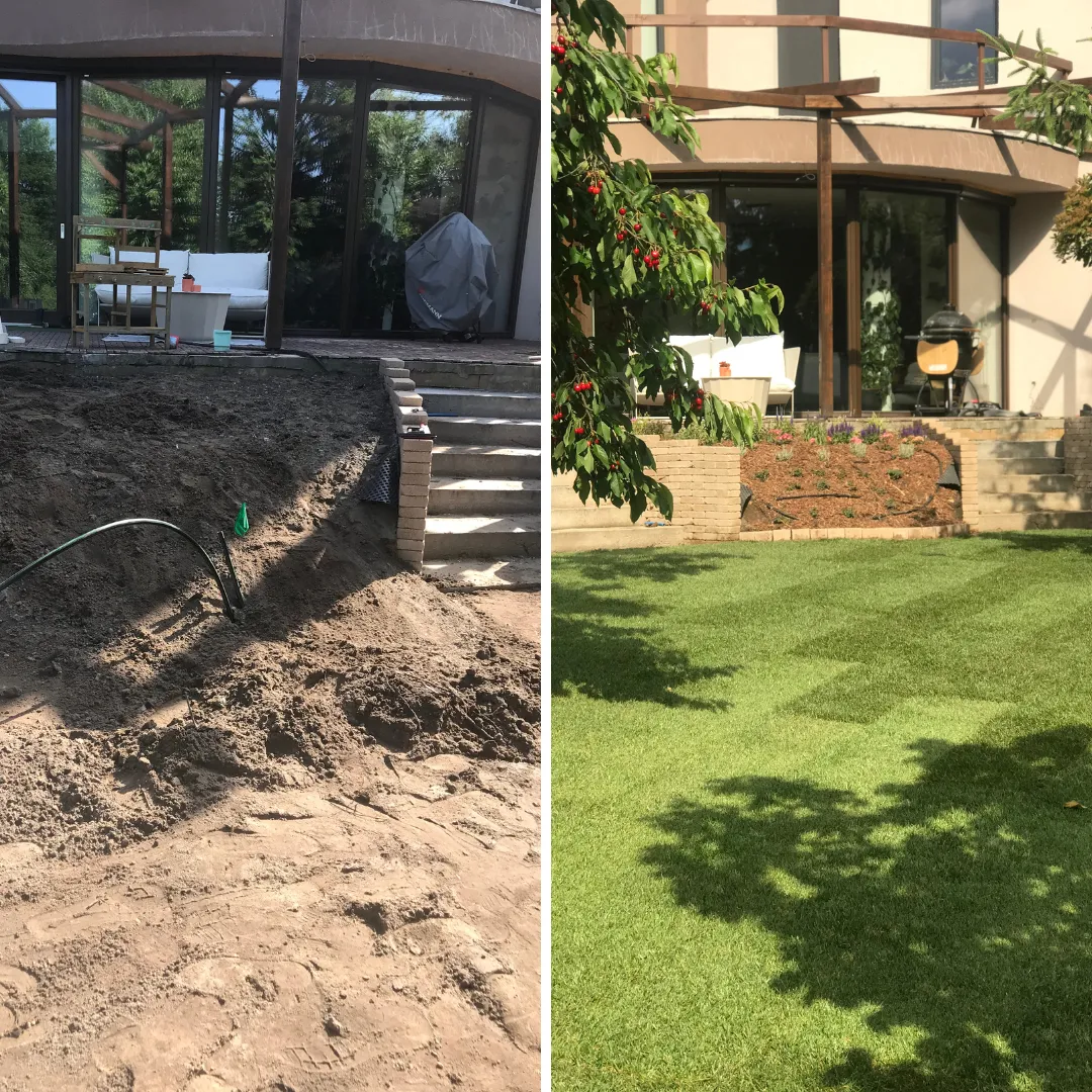 Pest vármegyében, Gödön egy háromgyermekes család számára alakítottunk ki egy olyan gyerekbarát, funkcionális és esztétikus kertet, ahol a természet közelsége a mindennapok részévé válik. Munkánk első lépése egy alapos, szakszerű tereprendezés volt: eltávolítottuk az egyenetlenségeket, törmelékeket, majd szintezéssel hoztunk létre egy nagyobb vízszintes felületet, ahol a gyerekek szabadon játszhatnak és mozoghatnak. A vízelvezetés kialakítására külön figyelmet fordítottunk, hogy hosszú távon is használható, jól működő kert szülessen.