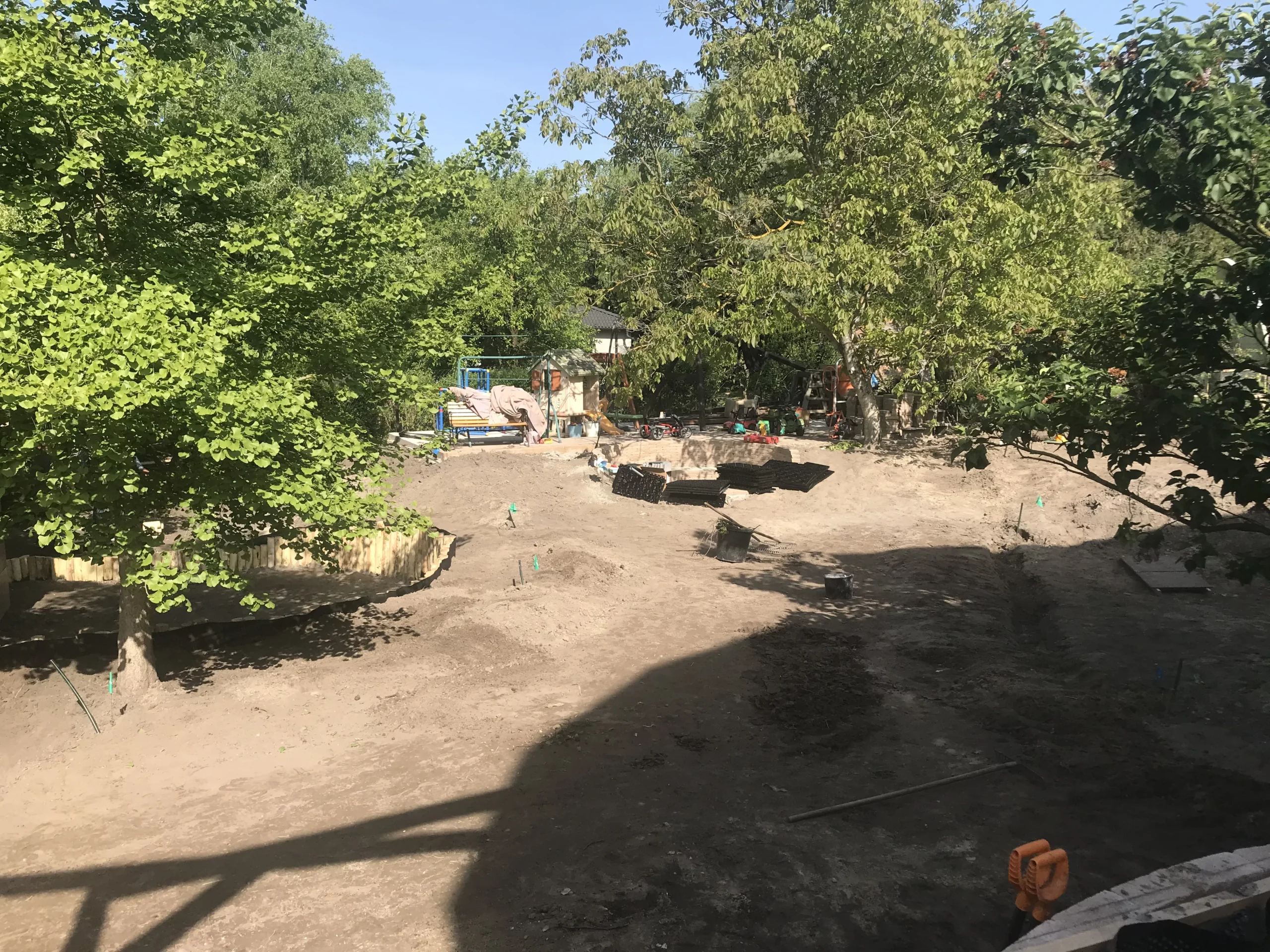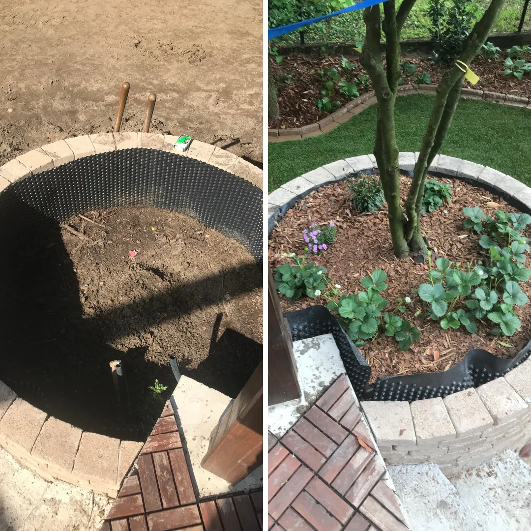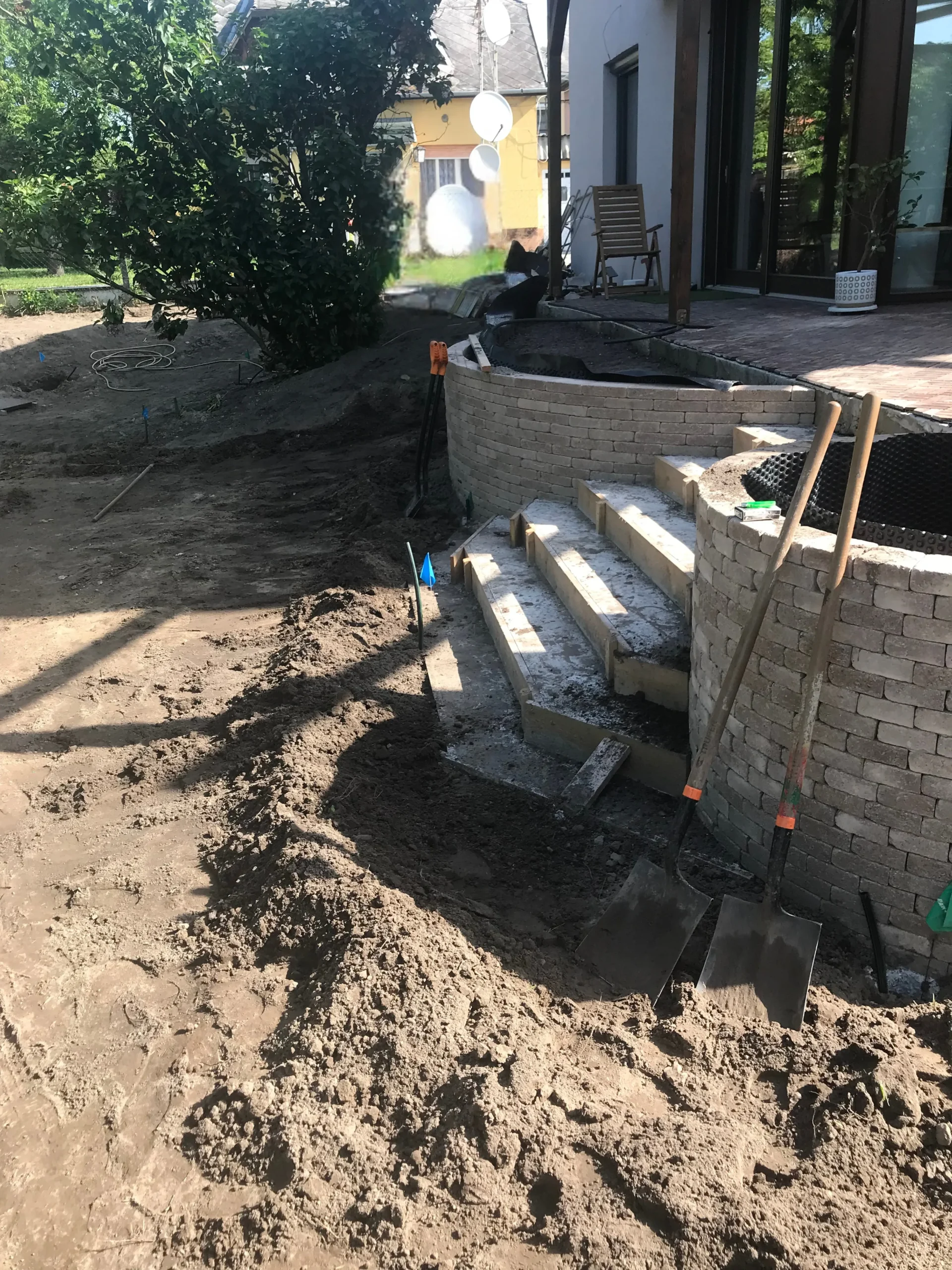 Pest vármegyében, Gödön egy háromgyermekes család számára alakítottunk ki egy olyan gyerekbarát, funkcionális és esztétikus kertet, ahol a természet közelsége a mindennapok részévé válik. Munkánk első lépése egy alapos, szakszerű tereprendezés volt: eltávolítottuk az egyenetlenségeket, törmelékeket, majd szintezéssel hoztunk létre egy nagyobb vízszintes felületet, ahol a gyerekek szabadon játszhatnak és mozoghatnak. A vízelvezetés kialakítására külön figyelmet fordítottunk, hogy hosszú távon is használható, jól működő kert szülessen.