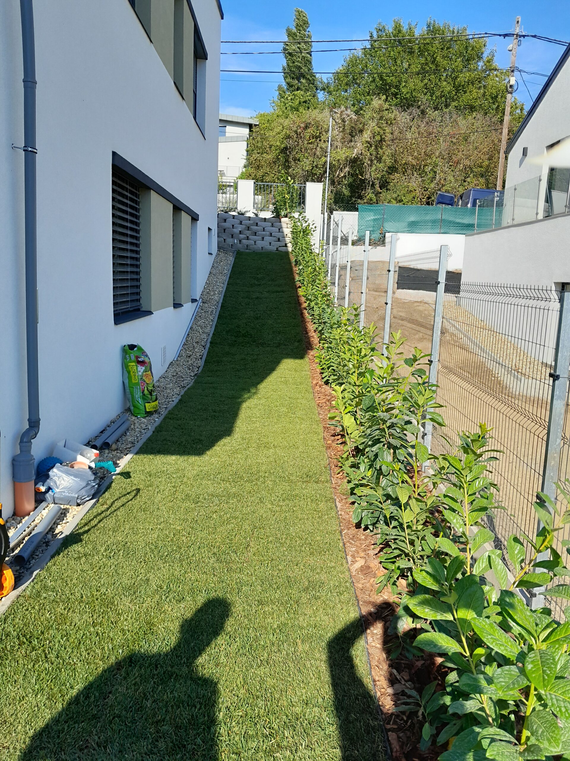 Ez a budapesti minimalista stílusú kert a letisztultság, rendezettség és nyugalom tökéletes megtestesítője. A gondosan kialakított gyepszőnyeggel borított zöldfelület azonnali esztétikai élményt nyújt, miközben ideális tér a pihenéshez és kikapcsolódáshoz. A gyepszőnyeg telepítésének köszönhetően a kert már az első naptól használható, rendezett és vonzó képet mutat.