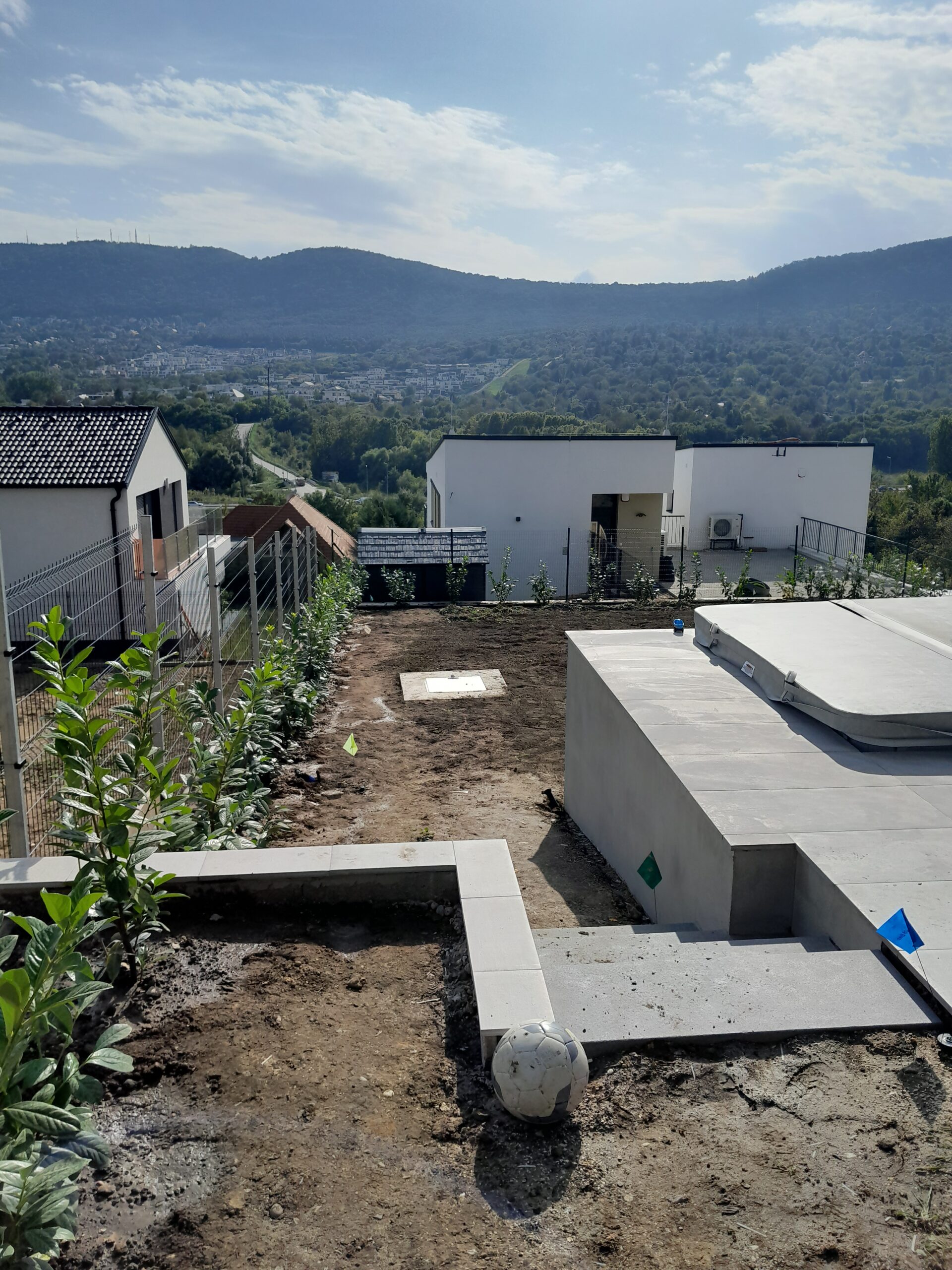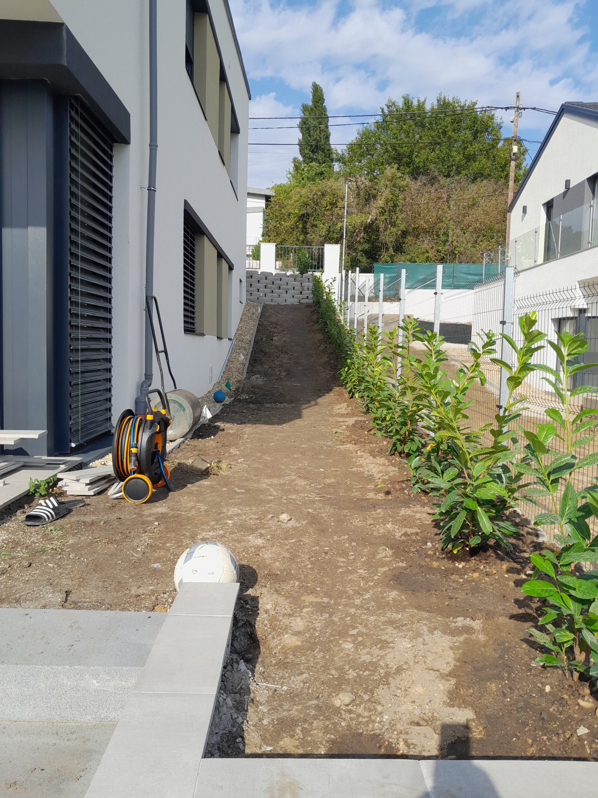 A gondozás egyszerűsítése és a hosszú távú fenntarthatóság érdekében a kertbe automata öntözőrendszert telepítettünk, amely a zöldfelületek és növények vízellátását programozottan, megbízhatóan és takarékosan biztosítja – így a kert mindig üde és egészséges marad, minimális ráfordítással.